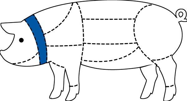 The neck, or collar, sits between the shoulder and the head and contains excellent marbling, giving it a robust, pork flavour. Neck cuts retain moisture when cooking and are prized for their depth of flavour and succulence.