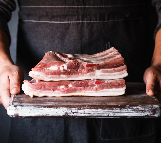 Pork belly bacon is made from the same area as side bacon, but with more even fat-to-meat layering for a melt-in-the-mouth experience. Pork belly produces tender, caramelised results and a deep savoury flavour and crisp texture that are a menu favourite worldwide.